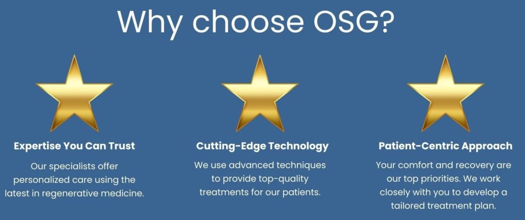 At OSG, we believe in empowering your body’s natural healing processes! Our advanced regenerative and biologic medicine treatments, including Platelet-Rich Plasma (PRP) and Bone Marrow Aspirate Concentrate (BMAC), are designed to enhance recovery, reduce pain, and improve function.